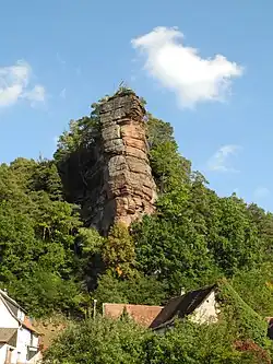 | Besonderheiten | • Wahrzeichen der Stadt Dahn • Bestandteil einer lokalen Sage • ragt wie ein Keil in die Bebauung von Dahn hinein • Teil des Klettergebiets Pfälzer Wald und regelmäßiges Ziel von Sportkletterern | |
