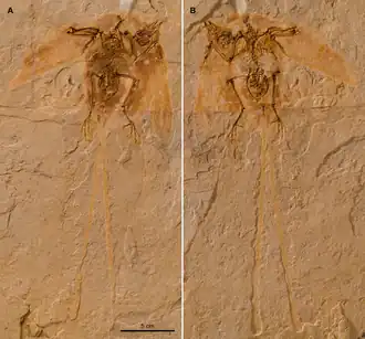 Das Fossil (Holotyp BMNHC PH-919) wurde in der Yixian-Formation, nahe der Stadt Daming (Innere Mongolei), entdeckt. Es wird auf ca. 126 Millionen Jahre alt geschätzt und liegen somit in der Unterkreide (Aptium oder Barremium). Der Holotyp besteht aus einem weitgehend gegliederten Skelett mit abgetrenntem Schädel. Umfangreiche Reste des Gefieders sind erhalten geblieben.[1]