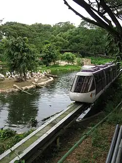 Die Einschienenbahn wurde im April 1992 in Betrieb genommen und zwanzig Jahre später im April 2012 stillgelegt. Sie wurde durch eine auf luftbefüllten Gummireifen auf der Straße fahrenden Wegebahn ersetzt, baugleich zu der im Zoo von Singapur und der Night Safari. Die Kosten für die Fahrscheine blieben unverändert, aber inzwischen gilt das Ticket für drei Runden im Gegensatz zu einer Runde auf der Einschienenbahn.[1]