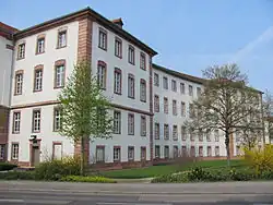 Das Gebäude weist nach außen neobarocke Formen auf, im Innern dagegen einen eklektizistischen Stil-Mix zwischen Historismus und Jugendstilelementen. Es ist verputzt, die Kanten, Gewände und andere hervorgehobene Bauteile sind dagegen in rotem Buntsandstein aus der Gegend von Miltenberg errichtet.