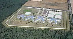 Die Gesamtfläche der Justizvollzugsanstalt umfasst 220.532 m² auf der 15 Gebäude errichtet sind. Neben vier Hafthäusern, drei Werkhallen und einer Sporthalle besteht jeweils ein Verwaltungsbau, ein Pfortenbau, ein Gebäude für Serviceeinrichtungen, ein Bau für Zugang und Besuch, ein Küchentrakt, ein Gebäude mit Abstellflächen sowie eine zweigeschossige überdachte Magistrale. Die überbaute Fläche umfasst 49.443 m². Umgeben ist die Anlage von einer 1.565 Meter langen Mauer.