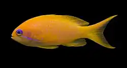 Weibchen sind orangefarben und zeigen eine lavendelfarbenen Streifen, der vom unteren Augenrand bis zur Basis der Basis der Bauchflossen verläuft. Auch die obere Hälfte der Iris ist lavendelfarben. Die Afterflosse der Weibchen ist abgerundet. Weibchen werden mit einer Länge von 4,7 cm geschlechtsreif, sind mit einer Standardlänge von 6 cm bereit das Geschlecht zu wechseln und erreichen eine maximale Standardlänge von 7 cm.[1]