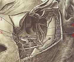 Bei 11 bis 15 mm großen menschlichen Embryonen beginnt die Entwicklung des juxtaoralen Organs als Aussprossung einer Epithelleiste (1) aus dem Mundhöhlenepithel einer Seitentasche (Sulcus buccalis) der embryonalen Mundhöhle. In der Folge verlagert sich die Organanlage zusammen mit dem Nerven weg von der Mundschleimhaut an die eingangs erwähnte Stelle der tiefen Gesichtsregion.