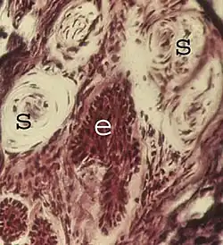 Im histologischen Bild zeigen sich zahlreiche Epithelknospen, eingebettet in zell- und nervenreiches Bindegewebe. Am Epithel enden an vielen Stellen sensorische Nervenästchen. Es gibt aber auch viele spezialisierte Nervenendkörperchen.