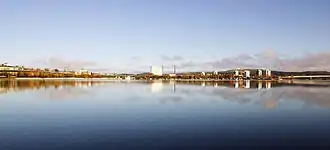 | Der Jyväsjärvi im Sommer 2006. Links das Stadtzentrum und rechts die Brücke nach Kuokkala | ||