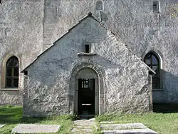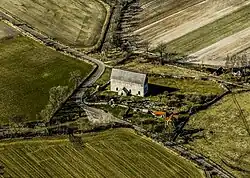 Die heutige Kirche mit rechteckigen Grundriss wurde in der zweiten Hälfte des 12. Jahrhunderts bzw. am Anfang des 13. Jahrhunderts errichtet, wobei der abschließende, gerade Chor etwas schmaler als das Langhaus ist. Das Waffenhaus wurde auf der Südseite und die Sakristei an der nordöstlichen Ecke des Langhauses angebaut.