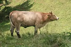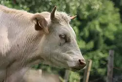 Einheitlich weiß bis maisgelbe Rinderrasse mit hellem Flotzmaul, Hörnern und Klauen. Kühe 500–600 kg, Stiere 800–850 kg. Das Blondvieh diente früher als Zugvieh, Milch- und Fleischlieferant.