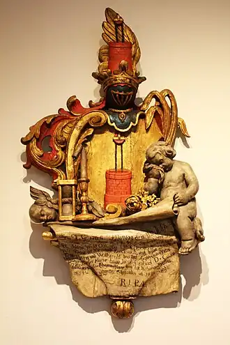 Die Gedenktafel der Maria von Groote zeigt recht deutlich die zur Barockzeit verwendete Technik eines Flaschenzugs. Es war die modernere Form der bisher üblichen, mit Winden ausgerüstete „Radpütze“,[9] bei denen ein Eimer an einem Strick (noch später Kette) hinunter gelassen wurde und dann gefüllt per Rad oder Walze nach oben gezogen wurden.[16] Erst in späterer Zeit, mit der 1745 entwickelten Saugpumpe, ersetzte man nach und nach diese Technik.[17]