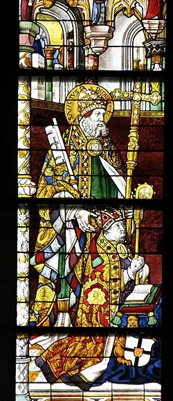 Silvester- und Gregor-von-Spoleto-Fenster | Michaelskapelle | Linkes Fenster der Kapelle, zeigt Papst Silvester I. und Gregor von Spoleto. Ursprünglich in der Marienkapelle eingesetzt.[80] | um 1330 | |