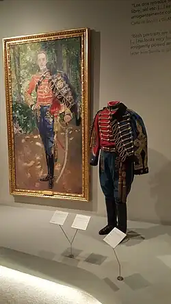 In Spanien war Sorolla kein offizieller Hofmaler des Königs, der sich von zahlreichen Maler porträtieren ließ. Hierzu gehörten Román Navarro, Nicolás Aquino, José Mongrell Torrent oder Philip Alexius de László, die den König teilweise ebenfalls in Husarenuniform zeigten. Zudem nutzte der König das Medium der Fotografie zu seiner öffentlichen Darstellung, wie ein Bild des Königs in Husarenuniform von Christian Franzen aus dem Jahr 1923 zeigt.[13] Für die Autoren José Luis Díez und Javier Barón ist das Porträt König Alfons XIII. in Husarenuniform von Sorolla das schillerndste und spektakulärste Bildnis, das vom König geschaffen wurde.[14]