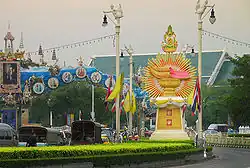 Zum 60-jährigen Thronjubiläum von König Bhumibol Adulyadej (Rama IX.) im Jahr 2006 wurde der Ratchadamnoen Boulevard im Bangkoker Stadtteil Phra Nakhon festlich geschmückt. Unterschiedliche Torbögen reichten teilweise über die gesamte Fahrbahnbreite, verschiedene Ausstellungsstücken (Exhibits) wurden auf dem Grünstreifen in der Mitte aufgestellt. Während die Torbögen Geschichte, Religion oder Mythologie zum Thema hatten („Die Naga“, „Maha Chakri“, „Die Neun Edelsteine“, …), stellten die „Exhibits“ die Fünf Königlichen Insignien dar: