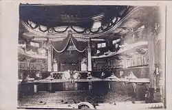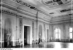 Nach der Zerstörung des Königlichen Schauspielhauses fand das erste Nachkriegskonzert auf Veranlassung des Herrn Oberbürgermeisters der Stadt Potsdam zu Ehren der Roten Armee am 26. Mai 1945 in einem Saalbau in der Kaiser-Wilhelm-Straße, heute Hegelallee 25/26, statt.[16] Dargeboten wurden Werke von Verdi, Puccini und Bizet. Am 1. September stand zur Eröffnung der Theatersaison Lessings „Nathan der Weise“ auf dem Spielplan. Am 24. September desselben Jahres beschlagnahmte die Sowjetarmee das Konzerthaus und nutzte es bis zur Wende als „Haus der sowjetischen Offiziere“. Mit Gründung des „Brandenburgischen Landestheaters“ in Potsdam 1946, diente zunächst der „Komödiensaal“ im Neuen Palais als Ersatzspielstätte, der etwa 300 Gästen Platz bot.[17] Zur Saisoneröffnung kam am 28. August das Stück „Iphigenie auf Tauris“ von Johann Wolfgang von Goethe zur Aufführung. Durch jahrzehntelange Vernachlässigung – eine geplante Renovierung 1928 wurde wegen der zu hohen Kosten nicht durchgeführt – war die Einrichtung des Theatersaals verwahrlost und die Bühnentechnik nicht mehr zeitgemäß.[18]