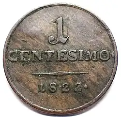 Centesimo Lombardo-Venetien von 1822, Wertseite