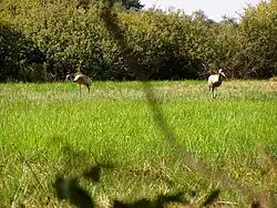 Die Grünlandflächen werden von Wildschweinen und Graugänsen zur Nahrungssuche aufgesucht.