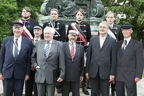 Das älteste Kartell schlossen 1820 Baruthia und Bavaria Würzburg.[EN 8] Thuringia Jena, Brunsviga Göttingen, Borussia Greifswald, Saxonia Leipzig und Silesia Breslau taten sich Ende der 1860er Jahre zusammen. Als Kern des schwarzen Kreises gilt heute das Eisenacher Kartell mit Suevia München, Brunsviga Göttingen, Hassia-Gießen und Thuringia Jena.[EN 9][EN 10] Bürgerlichkeit und Sparsamkeit kennzeichnen die schwarzen Corps. Besondere Bedeutung hat für sie die Mensur.