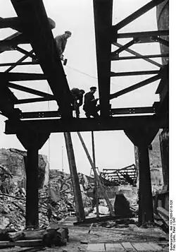 „16 der 28 Straßen- und Fußgängerbrücken und 3 der 7 Eisenbahnbrücken wurden zerstört. Im Umfeld gab es große Bombenschäden …“[2]