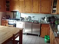 Mit dem Ausdruck Küche wird daneben heute auch die Kücheneinrichtung bezeichnet. Die Kücheneinrichtung umfasst diejenigen Schränke, Großgeräte (Gargeräte, Kühl- und Gefriergeräte), Lüftungs- und Wasserinstallationen, die einen Küchenraum erst zur Küche machen.