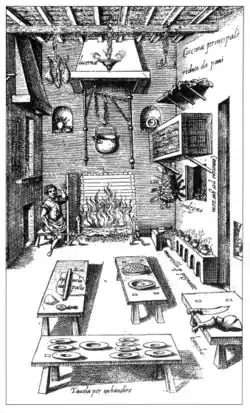 In dieser Zeit beginnen die großen Küchen auf den Burgen und Schlössern sich von reinen Nahrungsproduktionsstätten hin zu diversifizierten Dienstleistungsbetrieben zu wandeln, als Vorwegnahme der Aufteilung in heutigen Großküchen der Gastronomie wurden jetzt Teilbereiche an Spezialisten ausgelagert, an die Stelle des einzelnen Kochs, der die Gerichte der Herrschaft zubereitet, trat ein Stab von Köchen unter der Führung eines Küchenmeisters. Einer der bekanntesten Küchenmeister seiner Zeit war François Vatel, der von zirka 1650 bis 1671 für zahllose prunkvolle und aufwändige Festveranstaltungen an den bedeutendsten Höfen Frankreichs zuständig war. Große Festküchen dieser Zeit belegen ganze Flügel der jeweiligen Schlösser.