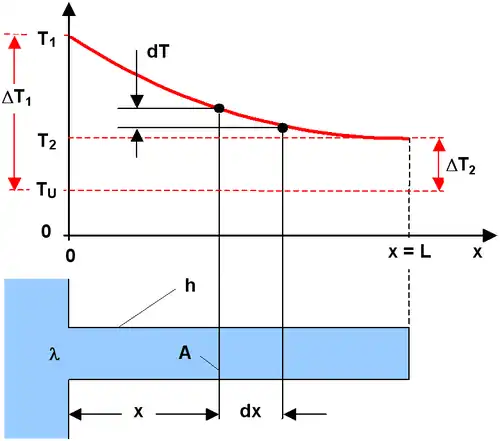 Bei konstanter Wärmeleitung entlang eines Stabes oder einer Rippe stellt sich ein thermisches Gleichgewicht ein zwischen dem Wärmestrom, der in den Stab eintritt, und dem Wärmestrom, der über die Oberfläche an die Umgebung abgeführt wird.