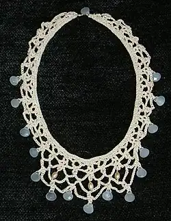 In jüngerer Zeit ist es zu einer beliebten Handarbeit geworden, Schmuck aus künstlichen Perlen anzufertigen. Neben dem einfachen Auffädeln auf reißfestes Garn oder ummantelten Draht verwenden die Freunde dieser Handarbeit Techniken, bei denen das Garn nach bestimmten Mustern mehrfach durch die Löcher der Perlen geführt wird. Das Ergebnis sind flache oder dreidimensionale Objekte, die durch die Größe und Form der verwendeten Beads immer etwas anders aussehen. Fischgräten-, Peyote- und Ziegelsteinstich zählen zum sogenannten freien Perlenweben, bei dem kein Webrahmen zum Einsatz kommt. Diese Techniken sind bereits sehr alt, so stammt der Ziegelsteinstich aus dem Alten Ägypten, und sind einfach zu erlernen. Zahlreiche Zeitschriften und Bücher über das Hobby erläutern traditionelle und neue Techniken.[3]