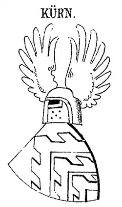 Dietrich Kürn der Jüngere führte im Schild und auf dem Helm jeweils zwei Widderhörner. Ein weiteres Wappen bzw. Siegel von ihm zeigt im Schild die Zinnensparren und die Widderhörner auf dem Helm.