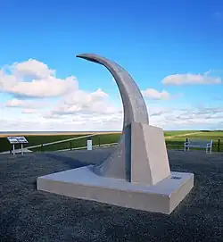 Die Betonskulptur Woge retour der Künstlerin Uta Grams aus Bassens symbolisiert den Sinn des Küstenschutzes. Die Deiche an der Küsten sollen die Wellen der Nordsee zurückwerfen.
