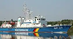 „Die Küsten eines Landes sind offene Grenzen, offen für Handel und Tourismus, aber auch für Verbrechen. Um die Sicherheit auf dem Meer zu wahren, haben sich die Bundespolizei (früher: der Bundesgrenzschutz), der Zoll und andere Behörden zu einer Polizei auf See zusammengeschlossen; sie sind die Küstenwache.“