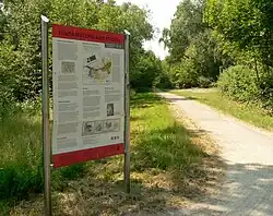 Das 4,2 Hektar große und überwucherte Lagerareal war wegen seiner Schwermetallbelastung aus der Batterieproduktion über Jahrzehnte nicht zugänglich.[15] 1989 erwarb die Stadt Hannover das Grundstück von der Akkumulatorenfabrik. 2024 führte sie für 750.000 Euro eine Umgestaltung des Geländes in einen Gedenk- und Informationsort durch[16] und erschloss es durch einen Rundweg.[17][18] Der rund 300 Meter lange Weg führt durch das ehemalige Lagerinnere, in dem die waldartige Vegetation belassen worden ist. Die Standorte von Baracken und Wachtürmen sind durch Metallstelen markiert. Am Weg stehen 22 Informationstafeln zur Geschichte des ehemaligen KZ-Außenlagers.[19] Die Eröffnung des Rundwegs fand am 8. Mai 2025, dem 80. Jahrestag des Kriegsendes und der Befreiung vom Nationalsozialismus, bei einer Gedenkveranstaltung statt.[20] Daran und an einem Schweigemarsch nahmen mehrere hundert Menschen und 25 Angehörige ehemaliger Häftlinge aus Dänemark und Frankreich teil.[2]
