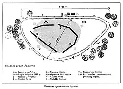 Das Konzentrationslager Jadovno (serbisch-kyrillisch Сабирни logor Јадовно Sabirni logor Jadovno) war während des Zweiten Weltkriegs das erste von um die 40 Konzentrations- und Internierungslagern im faschistischen Unabhängigen Staat Kroatien (NDH). Das von der kroatischen und rechtsextremen Ustascha zwischen Mai und August 1941 geleitete Lager befand sich in einer abgeschiedenen Gegend etwa 20 Kilometer von der Stadt Gospić. Die Zahl der Todesopfer, vor allem Serben, aber auch viele Juden, ist je nach Quelle und zeitlicher Veröffentlichung umstritten.[1] Das Lager wurde am 21. August 1941 geschlossen und später an das faschistische Königreich Italien übergeben.
