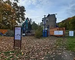 2020 schrieb die Stadt Frankenberg einen Ideenwettbewerb aus, um die „Kommandantenvilla“ in die geplante Gedenkstätte einzubeziehen. Aufgrund des schlechten baulichen Zustands sollten nur Teile des Baus erhalten bleiben.[43] Entsprechend sahen die beiden erstplatzierten Entwürfe einen weitgehenden Abriss des Gebäudes vor. Erinnerungsinitiativen lehnten dies entschieden ab, weil die Villa ein fundamentaler Bestandteil des Konzeptes einer künftigen Gedenkstätte sei. Es handele sich um einen „Täterort“, was einen entsprechenden Umgang mit den baulichen Relikten verlange.[44] Trotz der Proteste wurde am 11. Oktober 2022 mit dem Abriss der Kommandantenvilla begonnen.[45][46]