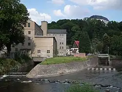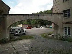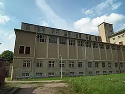 In den oberen beiden Stockwerken gab es unter dem Kommando der SS die Mannschaftsräume und einen Speisesaal der Wachtruppen.[16] Das Fabrikgebäude steht heute weitgehend leer. Eine eingebaute Wasserkraftanlage ist in Betrieb.