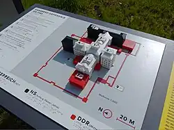 Ein Wachturm und Segmente der früheren Gefängnis-Außenmauer blieben erhalten. Hinzu kamen Informationstafeln zur Geschichte des politischen Haftorts sowie an der Innenseite eine Gedenkinschrift für die Opfer der nationalsozialistischen Gewaltherrschaft und an der Außenseite ein Gedenkstein für die Opfer der kommunistischen Diktatur.[71]