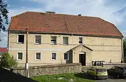 - Nordöstlich der Kirche liegt das zweigeschossige Pfarrhaus aus dem Anfang des 19. Jahrhunderts. Es wurde ebenfalls im Stil des Klassizismus erbaut. 1966 wurde es unter Denkmalschutz gestellt[10]
