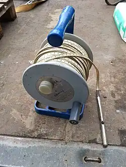 Das Kabellichtlot, auch Lichtlot, dient zur manuellen Messung der Tiefenlage des Wasserspiegels in Brunnen, Pegelrohren und engen Bohrungen.