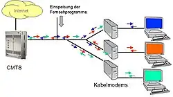 Das Gegenstück zum Kabelmodem beim Kabelnetzbetreiber wird Cable Modem Termination System (CMTS) genannt. Ein CMTS bedient je nach Ausbaustufe bis zu 50.000 Endkunden.