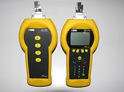 Durch einen Kabeltester kann ebenfalls die Funktion von Leitungen der Nachrichtenübertragung kontrolliert werden (siehe Abbildung – Tester für Netzwerkleitungen). Hierbei kann beispielsweise überprüft werden, ob die einzelnen Leitungspaare untereinander elektrisch isoliert sind und ob über alle Leitungspaare eine Kommunikation mit ausreichenden Signalpegeln möglich ist.