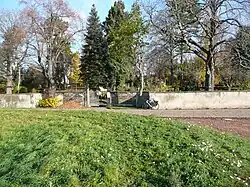 1870/71 wurde hier 116 französische Kriegsgefangene aus dem Deutsch-Französischen Krieg beigesetzt, die im Barackenlager Übigau verstorben waren. Unzureichende hygienische Bedingungen, der strenge Winter 1870/71 und nicht zuletzt das Elbehochwasser in der zweiten Februarhälfte 1871 waren die Gründe für die zahlreichen Toten. Der Friedhof wird deshalb heute auch Franzosenfriedhof genannt. Das Sammelgrab von 114 Soldaten und die Einzelgräber von 2 Unteroffizieren existieren noch. 1872 ließ eine französische Stiftung einen ersten Gedenkstein errichten.[10] Zum 25-jährigen Gedenktag renovierte der Königlich-Sächsische Militärverein das Grabmal und stellte eine schwarze Granitplatte auf mit der Inschrift: „Zum 25jährigen Gedenktag erneuert von den Königl. Säch. Militärvereinen Mickten, Pieschen, Trachau, Kaditz am 1. Sept. 1895“. Nach einer erneuten Sanierung durch die französische Kriegsgräberfürsorge wurde die Grabstelle am 1. November 2000 neu eingeweiht.[9]