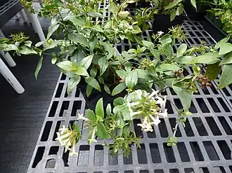 Die endständigen, meist dichten, seltener auch offene zymösen Blütenstände sind kahl und meist blaugrün gefärbt. Die Blütenstände enthalten mehrere gestielte Einzelblüten. Die Blütenstiele werden 0,2 bis 1,5 Zentimeter lang und haben einen quadratischen Querschnitt.[1]