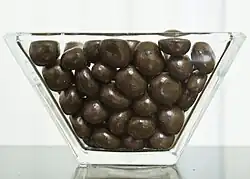 So können die gerösteten Bohnen auch im Ganzen verzehrt werden. Süßigkeitenhersteller bieten sie mit Schokolade überzogen als Naschwerk an. Die Bohnen zu essen gilt als gesund, da sie nährstoff- und vitaminreich sind. Allerdings ist bei übermäßigem Genuss Vorsicht geboten, da beim Kauen größere Partikel entstehen als beim Mahlen und sich das Koffein dadurch langsamer löst. Somit tritt eine Wirkung erst nach 20 bis 30 Minuten ein und hält einige Stunden an.[6]