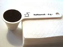 - ↑ Wie viel Kaffeepulver pro Tasse? 27. September 2020, archiviert vom ; abgerufen am 5. Mai 2024.