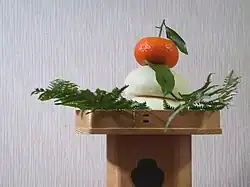 Kagami-Mochi (jap. 鏡餅, dt. „Spiegel-Reiskuchen“) ist eine traditionelle Dekoration zum japanischen Neujahrsfest. Sie besteht gewöhnlich aus zwei runden Mochi (Reiskuchen), wobei der kleinere auf dem größeren sitzt, und einer Daidai (eine japanische Varietät der Bitterorange) mit einem daran befestigten Blatt oben auf. Unter dem Mochi kann sich ein Blatt Konbu und in Stiftform gebrachte, getrocknete Kaki befinden. Das Ganze sitzt auf einem Ständer, der sampō (三宝, „drei Schätze“) genannt wird, auf einem Blatt Papier (四方紅, shihōbeni), das für die nächsten Jahre Feuer vom Hause fernhalten soll. Feuer führte in den hauptsächlich aus Holz und Papier erbauten japanischen Siedlungen oft zum Verlust ganzer Stadtteile.