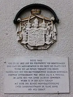 Der Berchtesgadener Hof war in fürsterzbischöflicher Zeit der Sitz des Fürstpropstes von Berchtesgaden. Berchtesgaden war zur Zeit Pilgrims II. von Puchheim für einige Jahrzehnte Teil des weltlichen Herrschaftsgebietes des Fürsterzbistums Salzburg, wurde aber dann ein (sehr kleines) eigenständiges geistliches Fürstentum im römisch-deutschen Reich. 1813 wurde dieser Hof der Berchtesgadener Pröpste verkauft, da Berchtesgaden nun bayrisch geworden war. Zwischen 1840 und 1847 war das Gebäude an das neu gegründete Erzbischöfliche Knabenseminar vermietet, aus dem 1849, nach dem Umzug in den wieder aufgebauten Primogeniturpalast, das Collegium Borromaeum und 1879 das Privatgymnasium Borromaeum hervorging.[4] Danach war hier der k.u.k. Poststall untergebracht. 1882 wurde es vom Lande Salzburg erworben und 1931 neu erbaut.