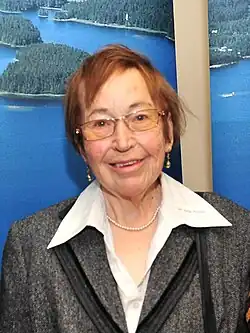- ↑ Das Bild entstand am 31. März 2012 anlässlich der 60. Gründungsfeier der DFG in Stralsund, an der Kaija Menger wie auch 2011 am 90. Jubiläum der Greifswalder Fennistik als Ehrengast teilnahm.