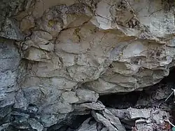 - Saupart-Subformation oder Konglomerat-Subformation, die sich als bis zu 2 Meter mächtige monomikte Konglomeratschicht direkt über dem paläozoischen Untergrund befindet. Die korngestützten Konglomerate bestehen aus Karbonatkomponenten. Der Name verweist auf einen Fundort südlich und südwestlich des Bauernhofes vulgo Saupart.[12][9]