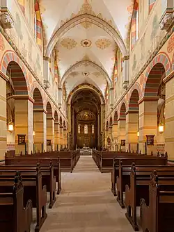 Rund 100 Jahre später wurden in den 1990er Jahren erhebliche Schäden an den Malereien festgestellt, die aus den Umweltbedingungen wie saurer Regen und Bausicherungsverfahren in den 1960/70er Jahren resultierten, als Zuganker und 300 Tonnen Beton ins Mauerwerk eingebracht wurden. Durch diese Bedingungen und die Alkalität des Betons in ein Kalksteinmauerwerk wurde die Salzbildung forciert und dadurch die Malerei geschädigt. Seit der 2010 abgeschlossenen Restaurierung ist die Ausmalung des 19. Jahrhunderts in ihrer ursprünglichen Farbkraft vollständig wiederhergestellt.[5]
