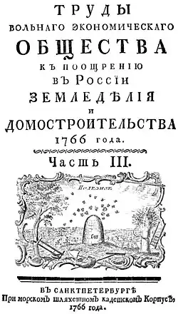 Katharina II. hatte schon 1763 bei der Akademie der Wissenschaften eine Klasse für Landwirtschaft angeregt. Lomonossow empfahl dafür einen Botaniker aus Schweden zu gewinnen, aber dort fand sich niemand, der bereit war, nach St. Petersburg überzusiedeln. Zwei Jahre später, am 15. Juni 1765, gründete in St. Petersburg eine Gruppe aus 15 großgrundbesitzenden russischen Adligen, aufgeklärten Bürokraten und Gelehrten die Freie Ökonomische Gesellschaft zur Förderung der Landwirtschaft und des Hausbaus in Rußland (russisch Вольное Экономическое Общество к поощрению в России земледелия и домостроительства).
