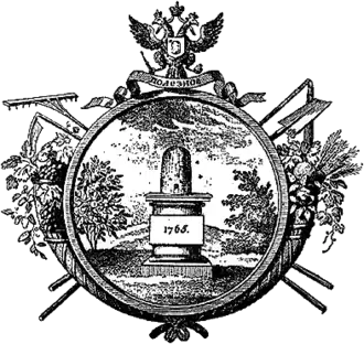 Ohne Beachtung der Standesunterschiede und der Dienststellung wollte man sich wöchentlich zusammenfinden, um die Glückseligkeit des Volkes zu befördern, wie es im Gründungsstatut hieß[3]. Katharina II. bestätigte das Statut am 31. Oktober 1765 und stellte 6.000 Rubel für den Kauf eines Hauses in St. Petersburg bereit. Erster Präsident war der Senator Adam Wassiljewitsch Olsufjew, satzungsgemäß wurde der Präsident anfangs alle 4 Monate neu gewählt. Die Freie Ökonomische Gesellschaft gehört zur Gruppe ähnlicher patriotischer und ökonomischer Gesellschaften, die im Zuge der Aufklärung ab den 1720er Jahren in vielen Ländern Europas entstanden.