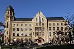 Der Gebäudekomplex wurde 1983–1986 saniert und dabei umgebaut. Über dem Risaliten am Friedrich-Ebert-Ring entstand ein postmoderner Giebel. Das Innere des Gebäudes wurde gleichzeitig völlig entkernt.