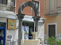 Ein weiterer Rest ist das Gefäß eines Brunnens, der sich heute auf der Piazza Federico II befindet.[14] Der über dem Brunnen angebrachte Bogen ist eine zeitgenössische Arbeit und erinnert an den noch vorhandenen Portalbogen.