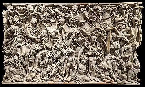 - Guntram Koch, Hellmut Sichtermann: Römische Sarkophage (= Ulrich Hausmann [Hrsg.]: Handbuch der Archäologie). Verlag C. H. Beck, München 1982, ISBN 3-406-08709-4.